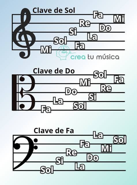 - Punto de referencia: Comienza en la segunda línea, por lo que la nota escrita allí siempre es un Sol.
